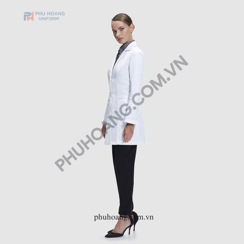 Chiều dài: Chiều dài áo ngang gối, vừa đủ kín đáo, trang nhã, phù hợp với môi trường làm việc y tế.