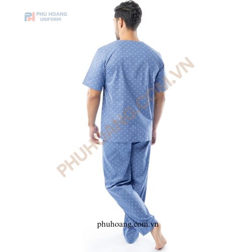 Kiểu dáng: Thiết kế dạng áo pijama với quần dài và áo cổ chữ V (hoặc cổ tròn tùy chọn), tạo sự kín đáo nhưng vẫn thoáng mát. Dây buộc hoặc cúc bấm bên hông giúp dễ dàng mặc vào và cởi ra, kể cả với những bệnh nhân hạn chế khả năng vận động.