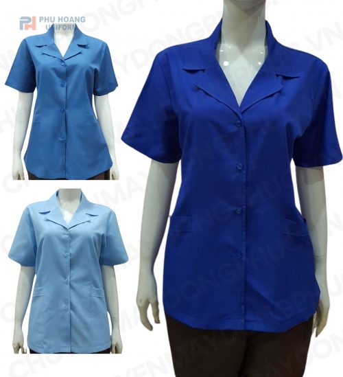 Áo tạp vụ nữ màu xanh dương – Đơn giản, hiện đại và chuyên nghiệp