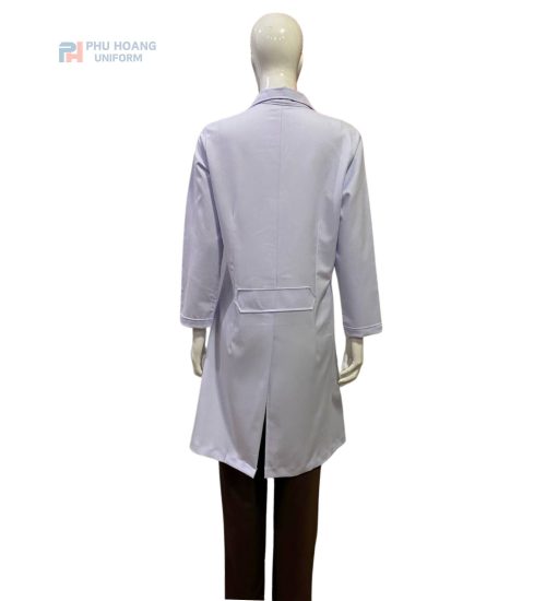 Điểm nổi bật đầu tiên chính là màu trắng tinh khôi, tượng trưng cho sự sạch sẽ, tin cậy và chuyên nghiệp trong ngành y. Áo được thiết kế với phom dáng chuẩn, ôm nhẹ theo cơ thể nữ giới, giúp người mặc luôn gọn gàng và tự tin.