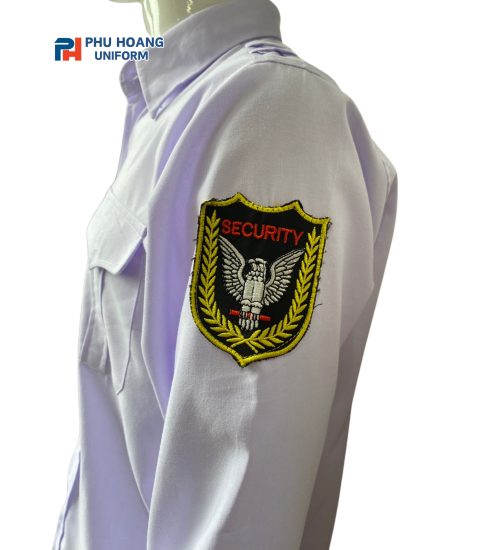 Áo được thiết kế với các vị trí gắn logo và cầu vai, giúp đồng phục trở nên chuyên nghiệp và dễ nhận diện hơn. Các chi tiết này khẳng định vai trò và trách nhiệm của người mặc.