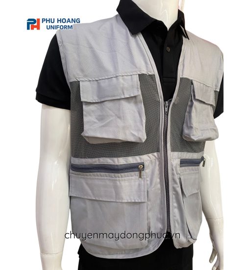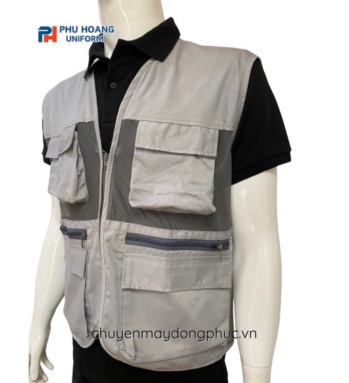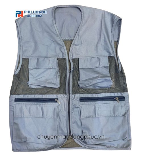 Áo công nhân có thiết kế với nhiều túi, bao gồm: