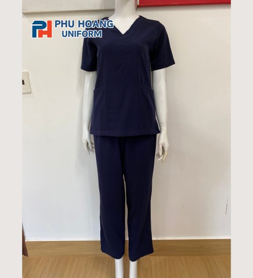 Chất liệu: Áo được may từ cotton, kate hoặc vải pha polyester. Những loại vải này mềm, thoáng, thấm hút mồ hôi tốt – phù hợp với môi trường spa.