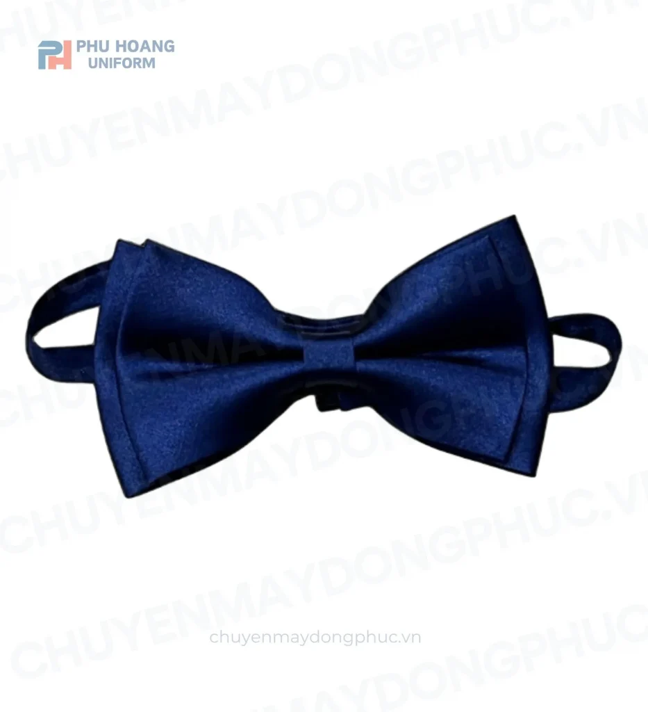 Chiếc nơ màu xanh đen nổi bật với gam màu trầm lịch thiệp, tạo điểm nhấn tinh tế cho trang phục. Thiết kế dáng nơ bướm cổ điển, ôm gọn phần cổ áo, tôn lên sự chuyên nghiệp và chỉn chu cho người mặc.