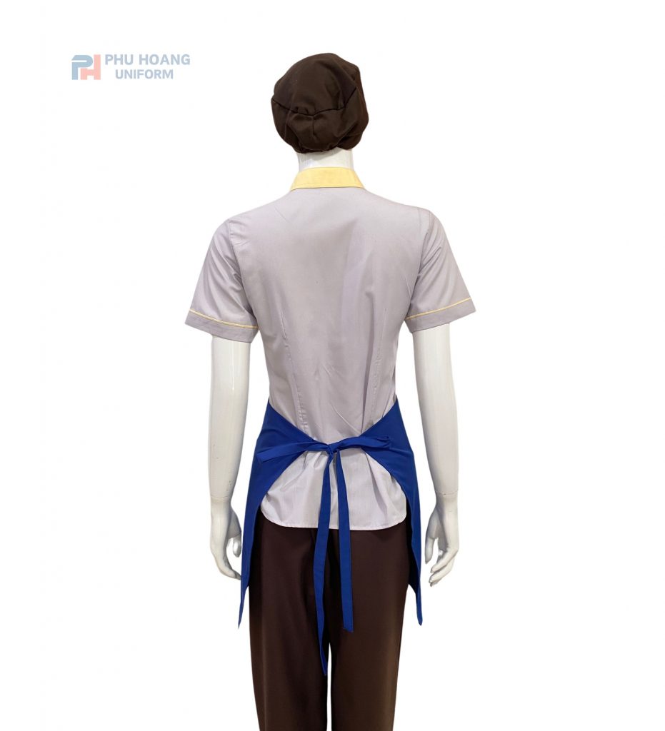 Trong môi trường F&B, nhân viên thường xuyên di chuyển, phục vụ và tiếp xúc khách hàng. Vì thế, tạp dề nên có thiết kế gọn nhẹ, dễ thao tác và không gây vướng víu. Đồng thời, nên chọn màu sắc đồng bộ với thương hiệu và có thể in/thêu logo để tăng tính nhận diện.