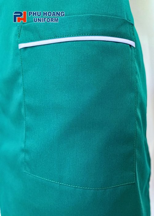Tạp dề yếm kaki xanh lá phối viền trắng – Tươi mới, chỉn chu và tiện dụng