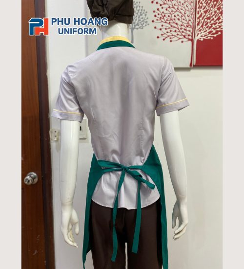 – Màu sắc: Tạp dề yếm màu xanh lá