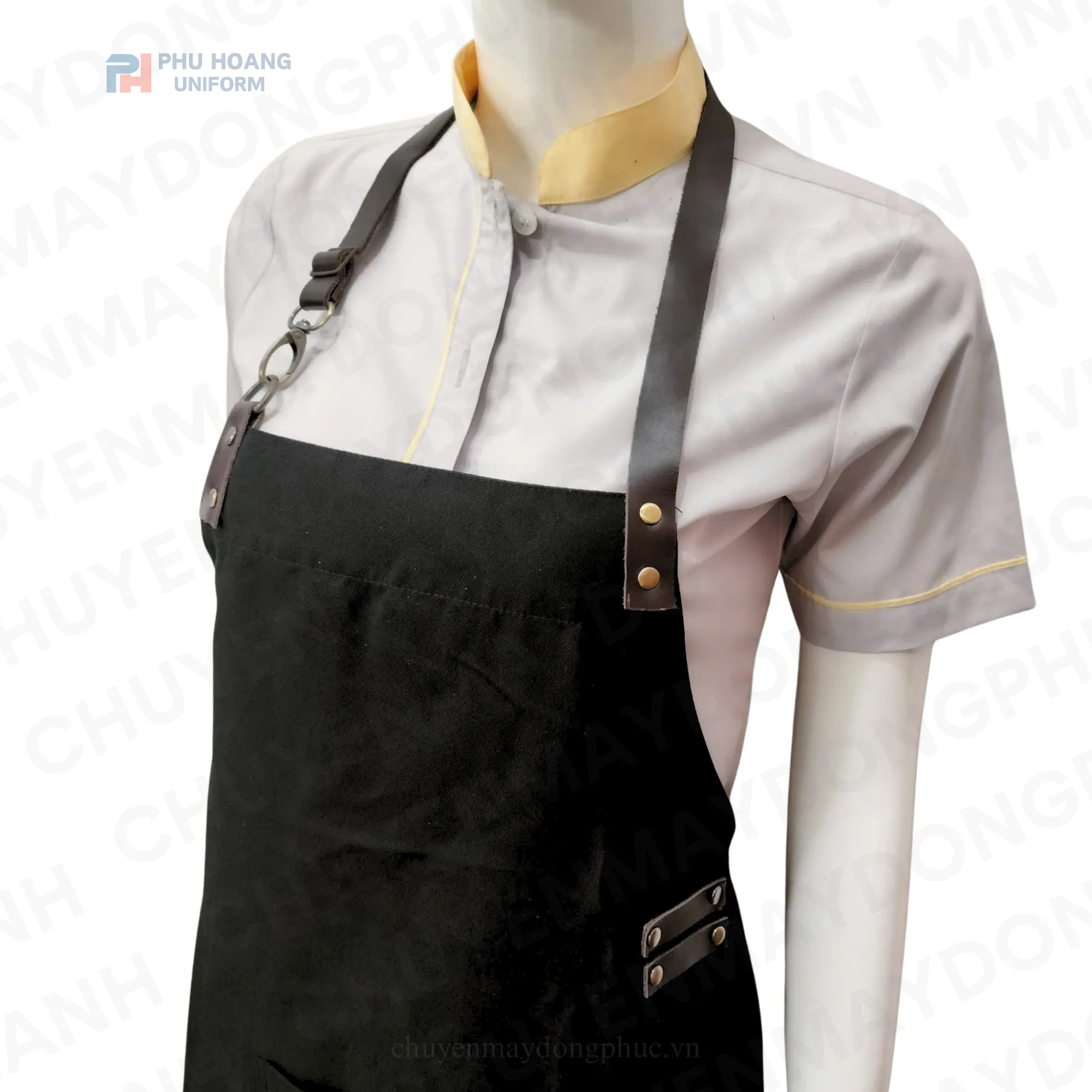 Đặc điểm: Đường may chắc chắn, form yếm đứng đẹp, túi tiện dụng đựng order, bút, đồ nghề; thích hợp môi trường làm việc liên tục.