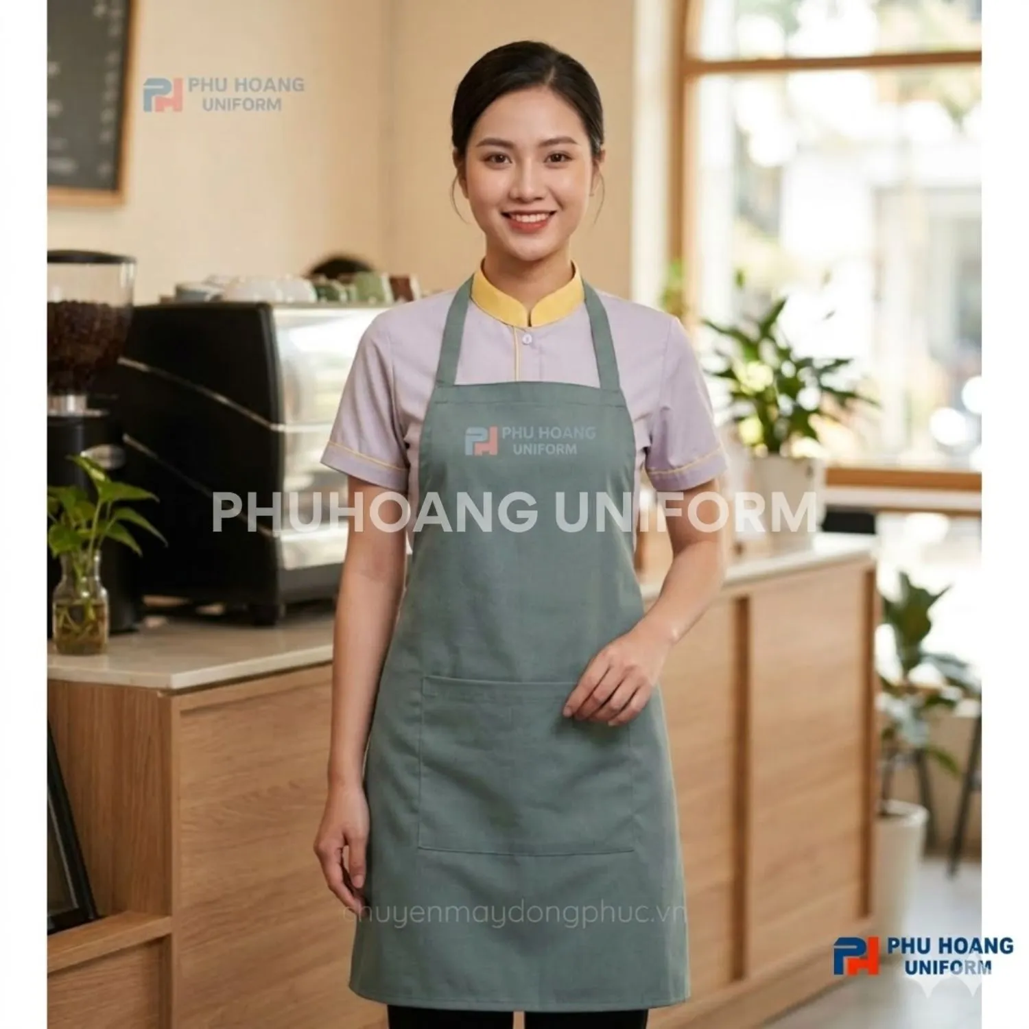 Mẫu tạp dề yếm màu xám này là lựa chọn số một cho các quán cafe. Nhân viên phục vụ sẽ trông chuyên nghiệp hơn với bộ đồ đồng nhất. Các tiệm bánh hay tiệm hoa cũng rất yêu thích mẫu thiết kế này.