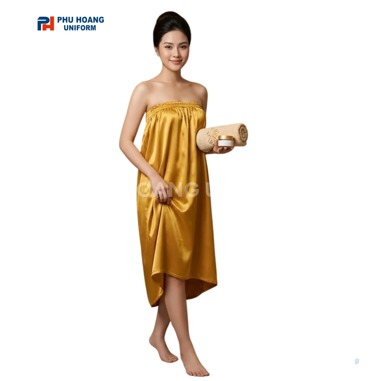 Hôm nay chúng tôi xin giới thiệu một thiết kế thời trang vô cùng đặc biệt. Mẫu váy quây spa màu vàng lụa đang là tâm điểm chú ý vô cùng lớn. Sản phẩm này chắc chắn sẽ làm hài lòng mọi vị khách vô cùng khó tính.