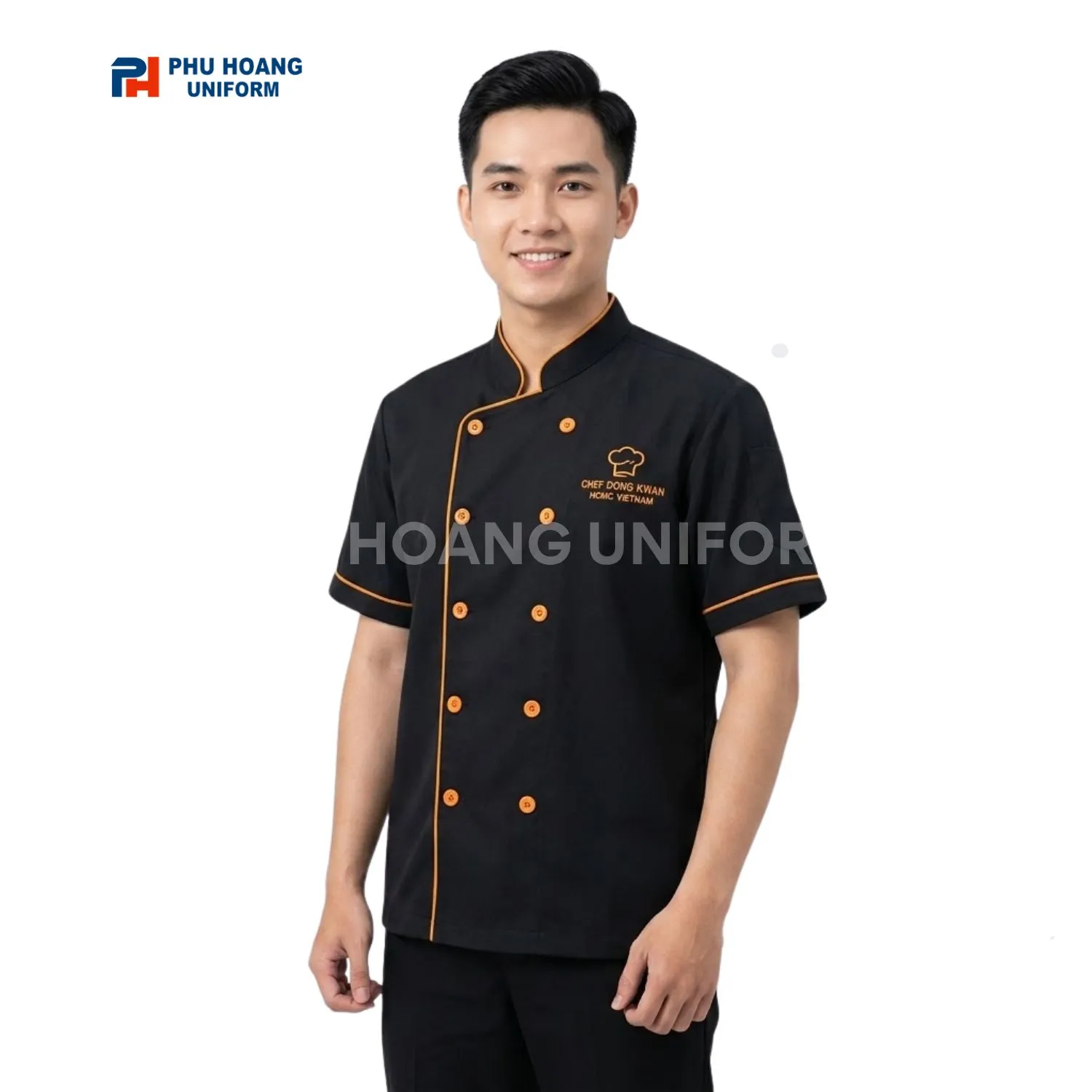 Đường viền màu tương phản chạy dọc cổ áo tạo ra một nét thu hút lớn. Diện mạo của người thợ mặc áo toát lên một vẻ vô cùng là cực sang. Nhà hàng của bạn sẽ sở hữu một hình ảnh vô cùng cực kỳ chuyên nghiệp.