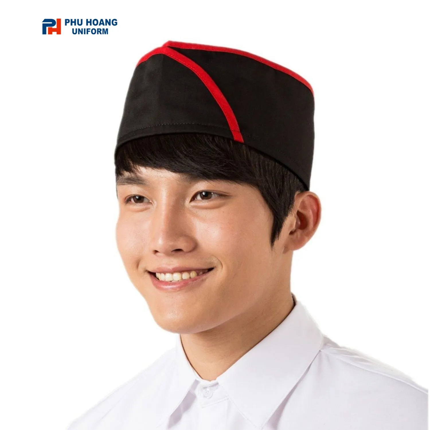 Nón Đen Viền Đỏ: Mạnh mẽ, quyền lực, phù hợp quán Sushi, Ramen, Yakiniku (nướng).