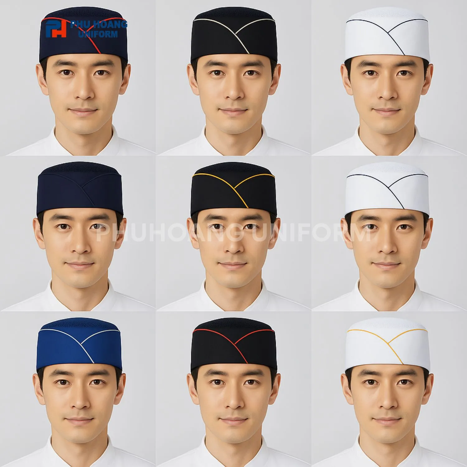 Nổi bật trong số đó là mẫu nón bếp Nhật viền chéo chóp lưới. Đây là sự kết hợp tuyệt vời giữa thẩm mỹ truyền thống và công năng hiện đại. Nó giải quyết triệt để vấn đề nóng bức trong bếp, đồng thời tạo điểm nhấn thời trang độc đáo. Phú Hoàng Uniform sẽ cùng bạn khám phá chi tiết về mẫu nón đang “làm mưa làm gió” này.