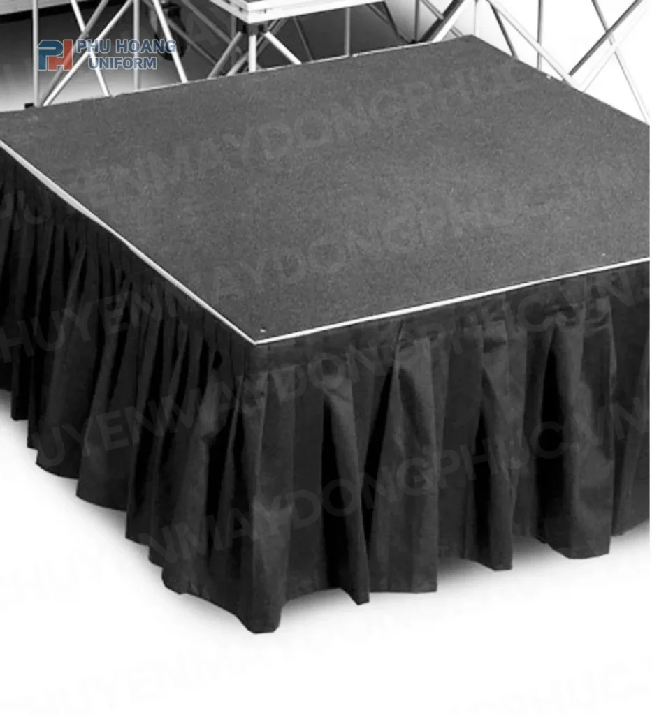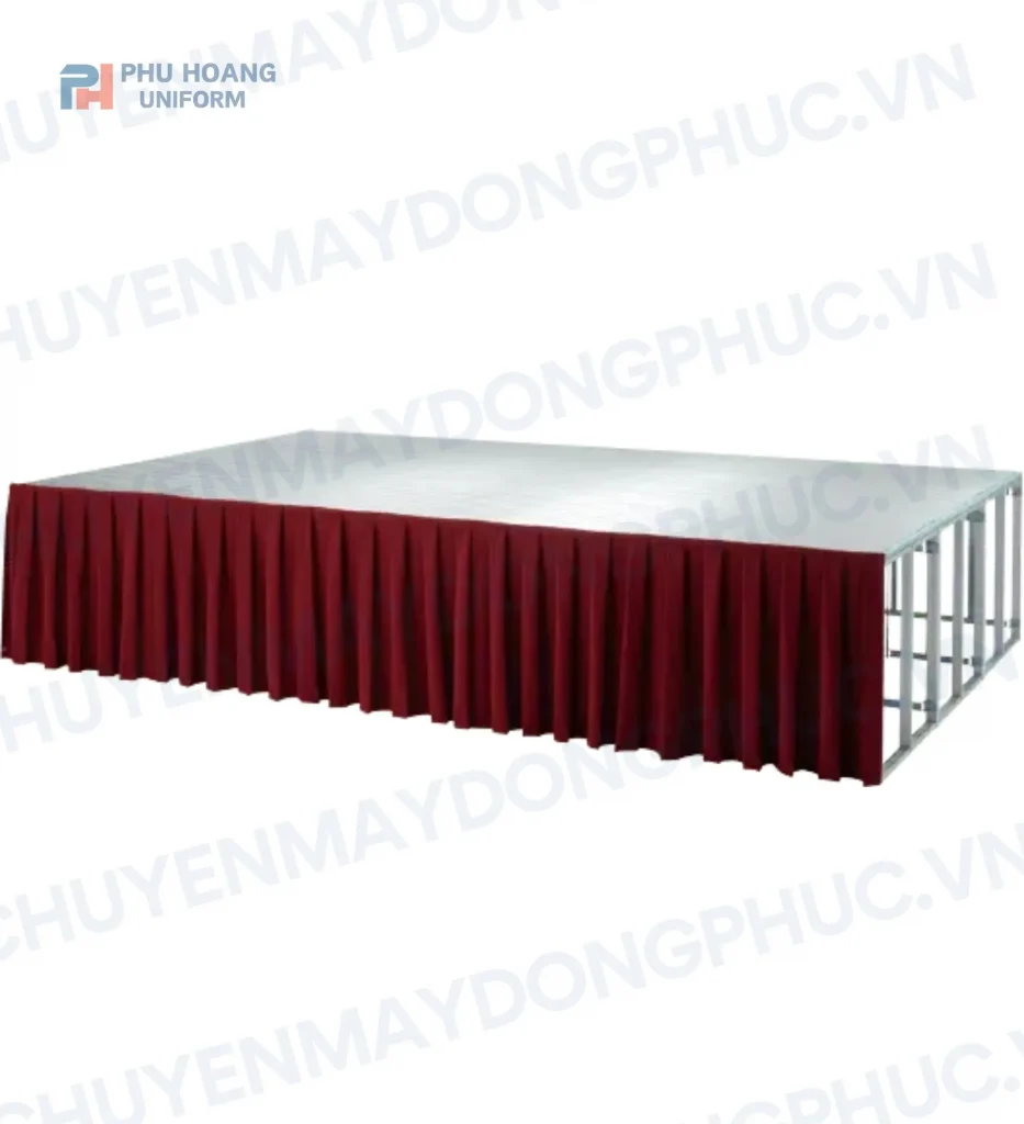Phú Hoàng Uniform là đơn vị chuyên cung cấp khăn che chân bục sân khấu, theo yêu cầu, cam kết: