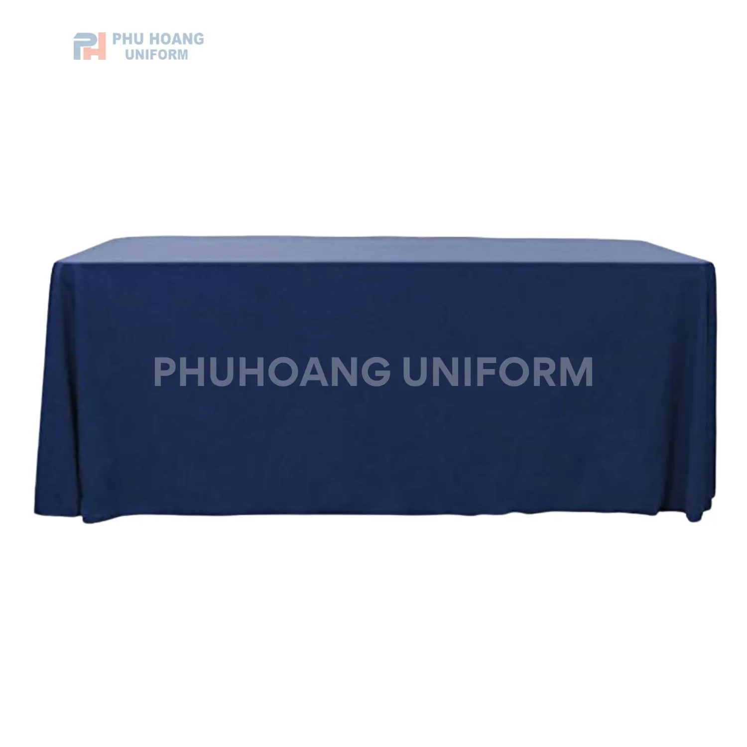 Ngược lại, kiểu khăn hộp (fitted) lại mang đến vẻ hiện đại, gọn gàng. Nó được may đo để ôm khít vào chiếc bàn hình chữ nhật. Kiểu dáng này rất phù hợp cho các bàn trưng bày sản phẩm. Hay các bàn đăng ký trong hội chợ, triển lãm. Nó tạo ra một bề mặt phẳng phiu, chuyên nghiệp, không vướng víu.
