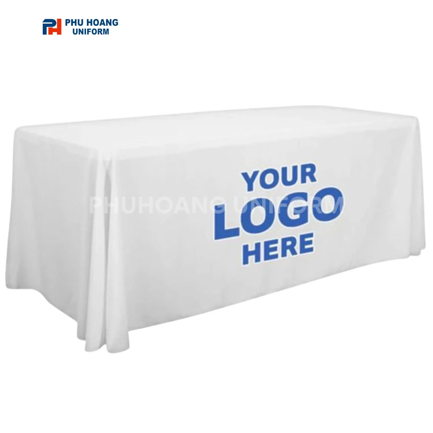 Khăn trải bàn in logo không chỉ có một kiểu dáng duy nhất. Kiểu khăn phủ (draping) truyền thống mang lại vẻ mềm mại. Nó buông rủ tự nhiên, phù hợp với các bàn tiệc tròn. Nó tạo ra một không khí lãng mạn và cổ điển. Đây là lựa chọn thường thấy trong các tiệc cưới, tiệc gala.